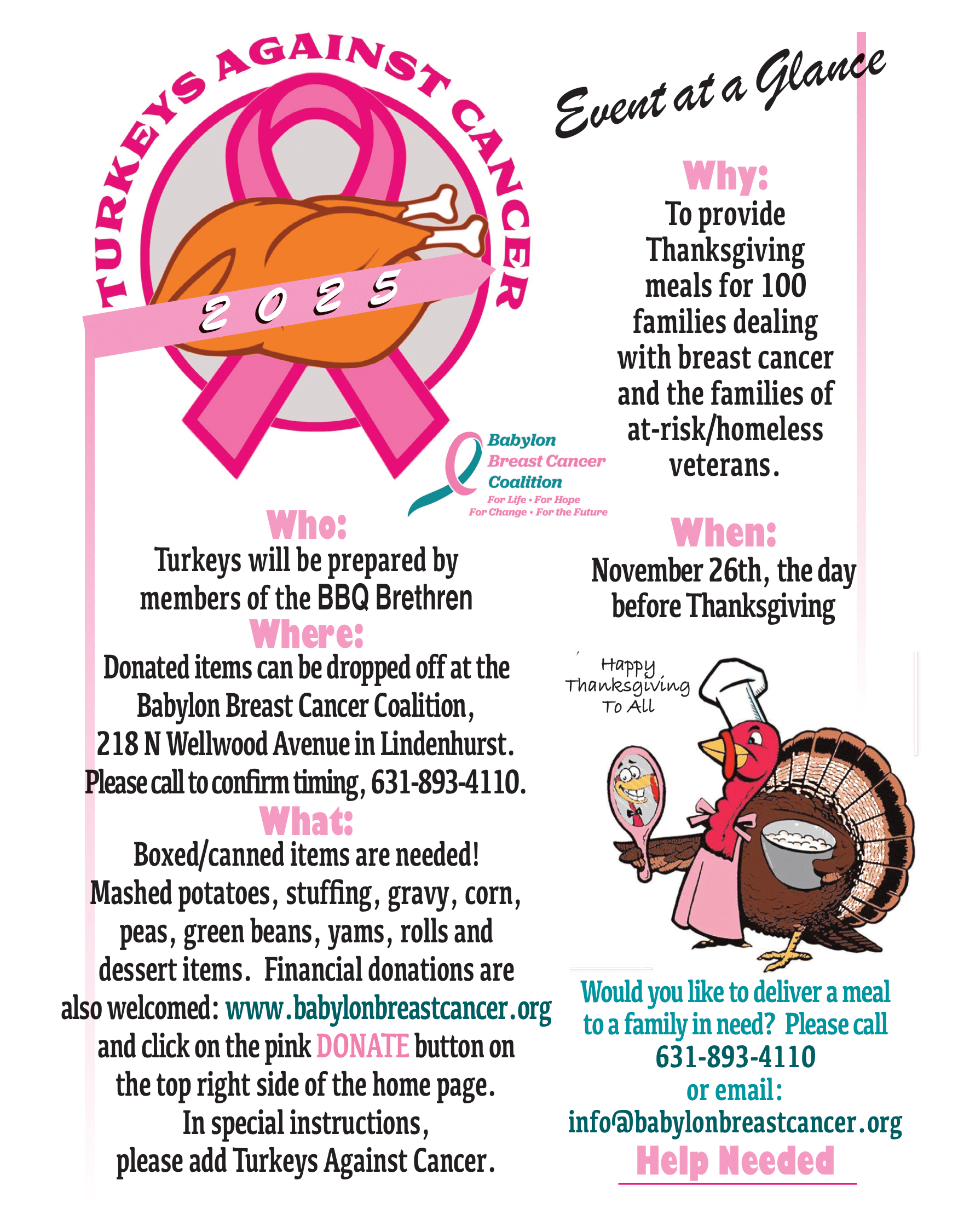 Please call the office at (631) 893-4110 to make your purchase and support the BBCC. 100% of the proceeds benefit the Babylon Breast Cancer Coalition.
